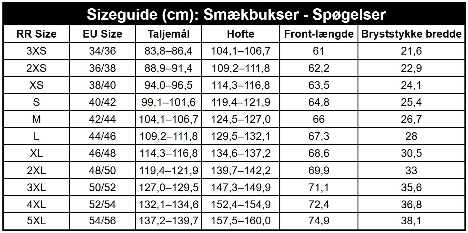 Størrelsesguide til smækbukser med spøgelser fra Rebel Romance