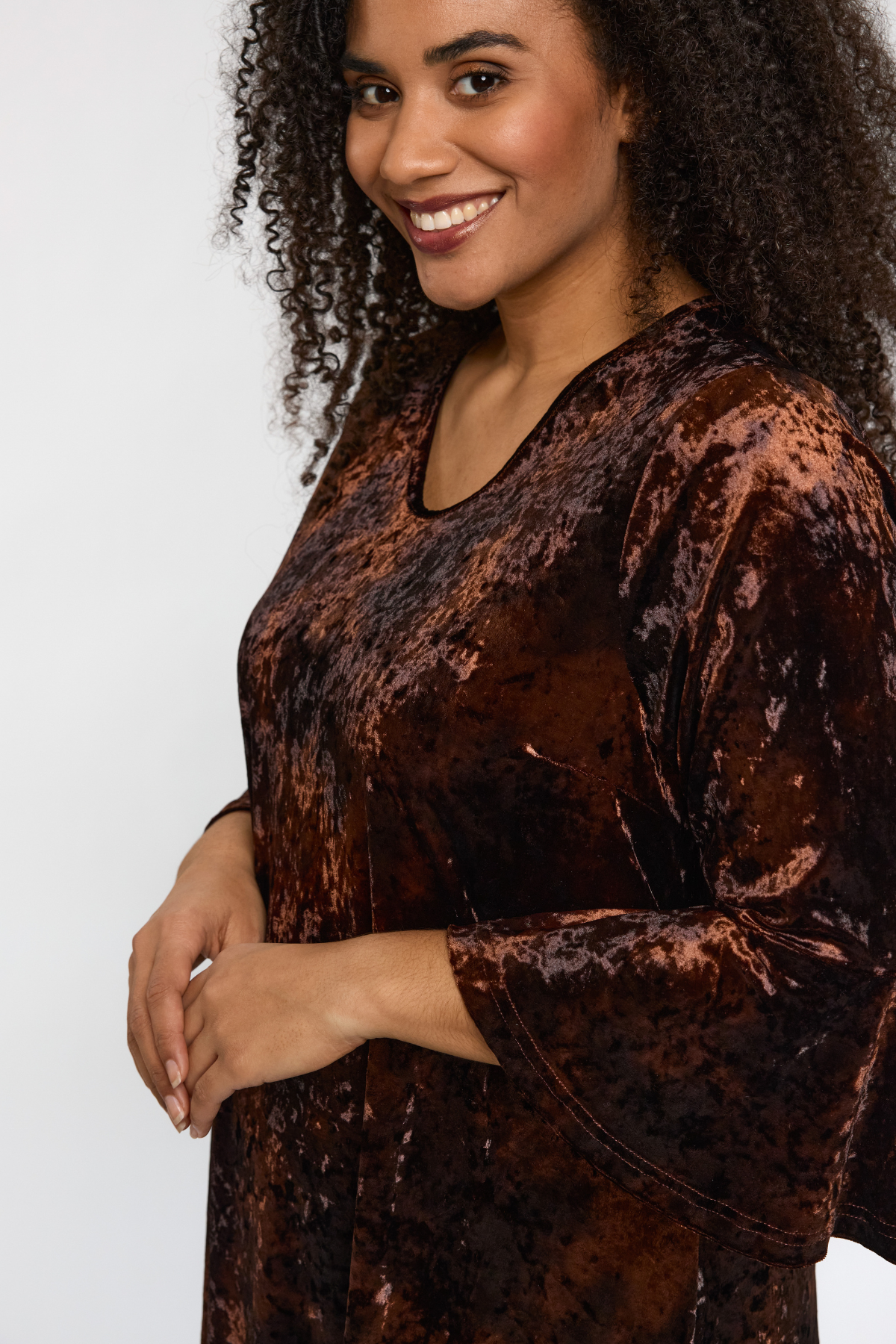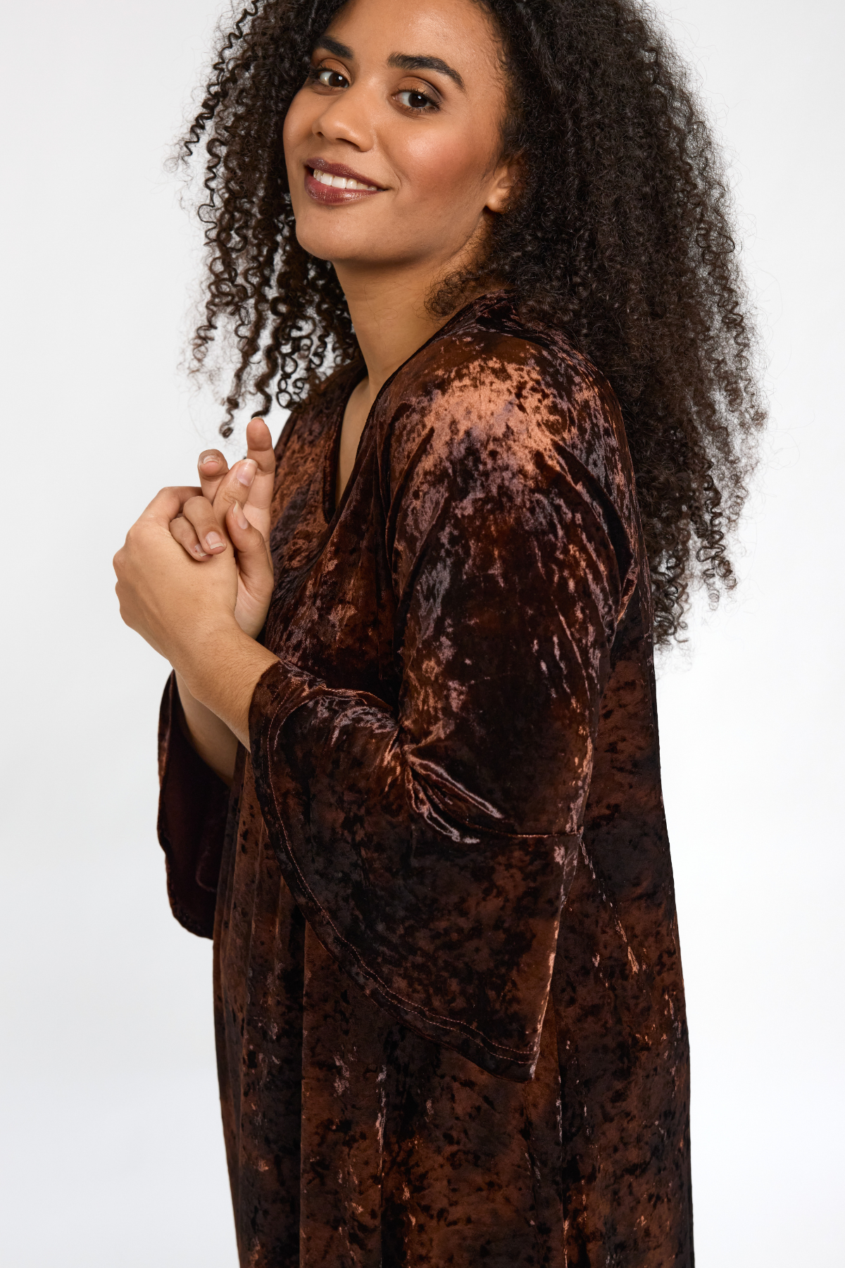 Denne kjole emmer af luksus og komfort på samme tid – fremstillet i blødt velour med en smuk glans, der fanger lyset, hver gang du bevæger dig.