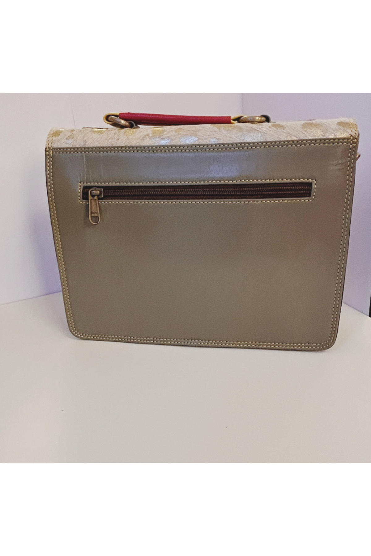 Hver taske er unik. Da den er håndlavet af genanvendt læder og ægte hair-on skind, vil farver, mønster og metalstænk variere – og det er netop det, der gør din taske helt særlig.