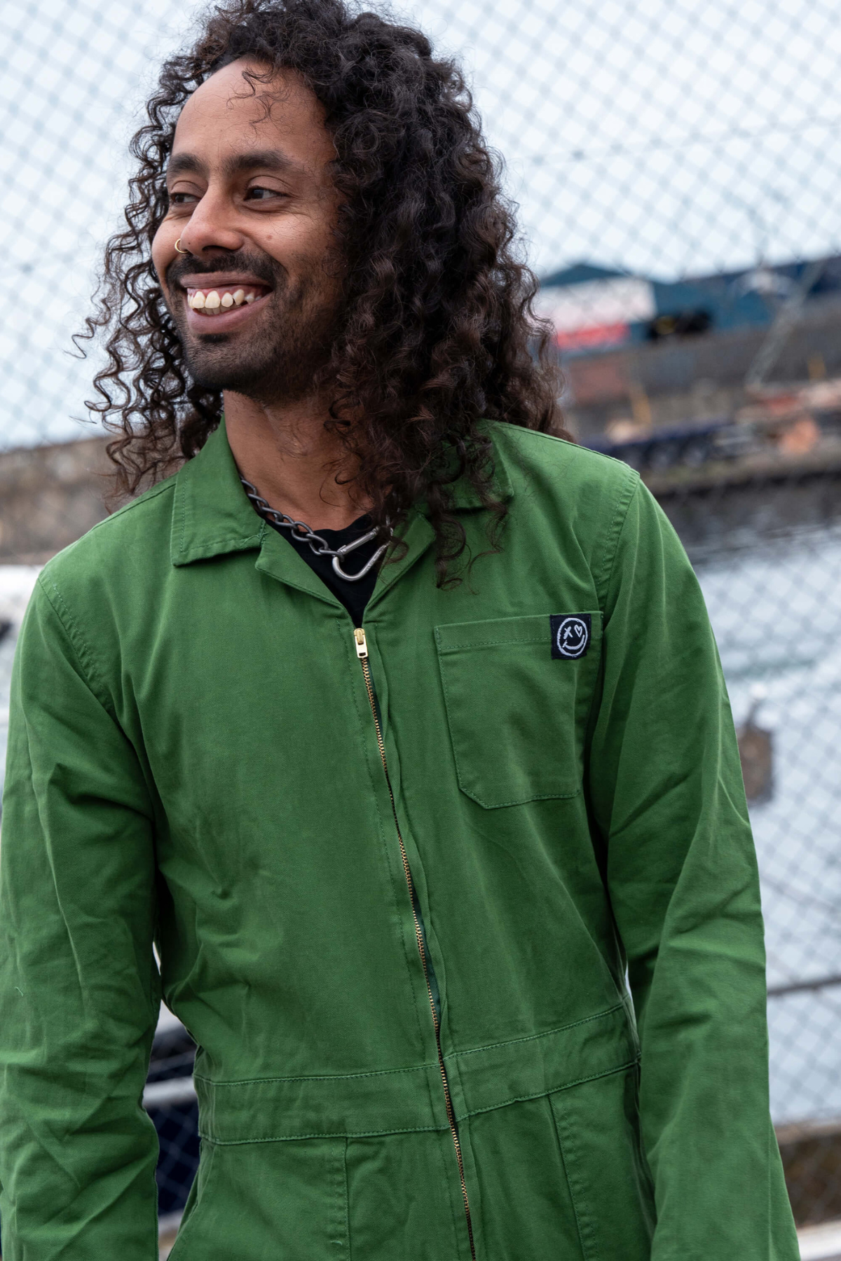 Kært barn har mange navne: grøn boiler suit, arbejdstøj jumpsuit, grøn overall, unisex buksedragt, forest green jumpsuit, Rebel Romance workwear, stretch cotton boiler suit, etisk mode, plus size jumpsuit, bæredygtig heldragt – vi skriver det hele, så du kan finde den uanset hvad du søger efter.