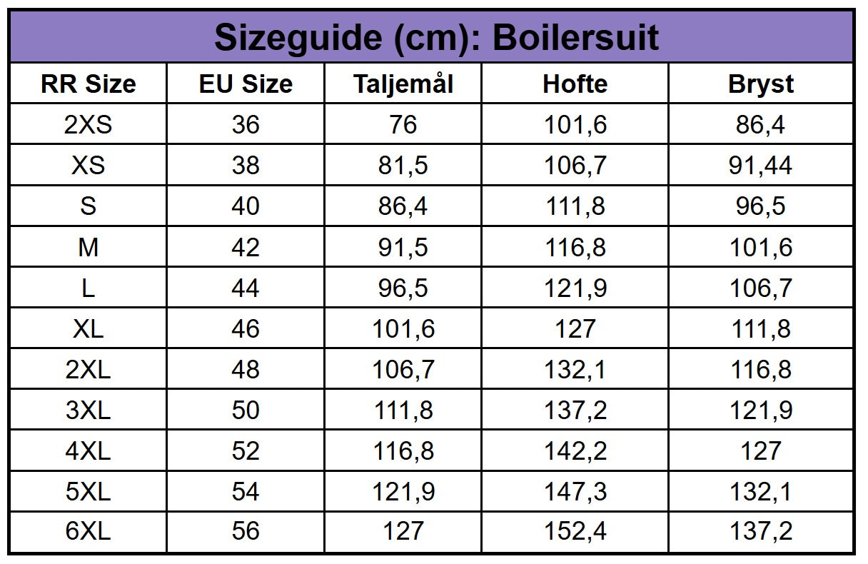 Rebel Romance jumpsuits har en afslappet unisex-pasform med justerbar talje og elastik i ryggen. For et mere figursyet look anbefaler vi at vælge en størrelse ned.