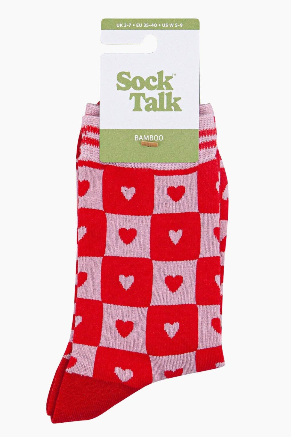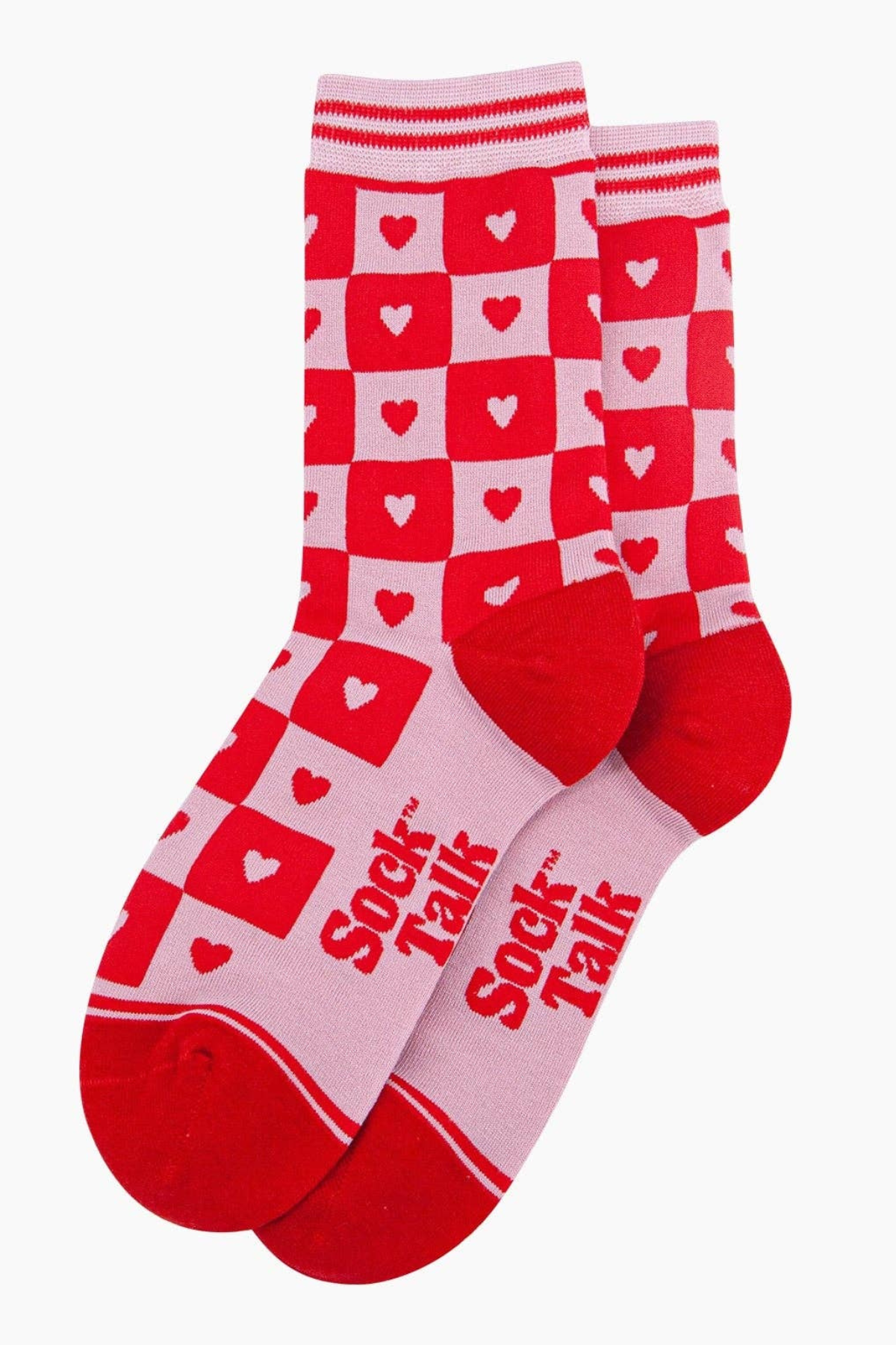 ❤️ Sock Talk Bambus Strømper – Heart Checkerboard Pink/Red