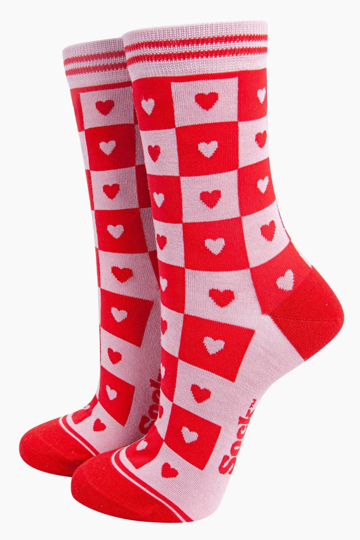 Sock Talk Heart Checkerboard Bambusstrømper – Pink & Rød | Mors Dag Gave