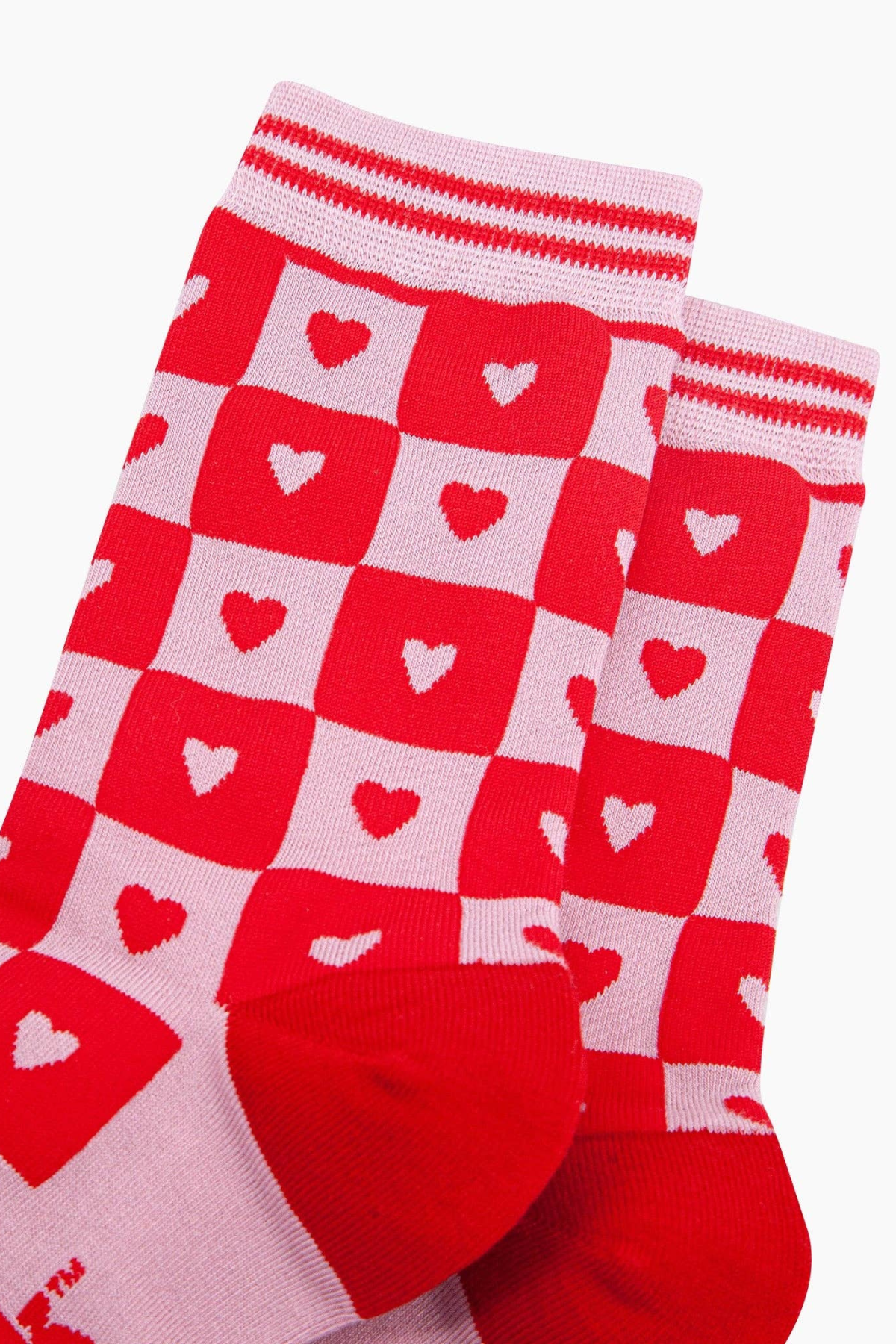 Heart Checkerboard bambusstrømper i pink og rød – ankelhøjde
