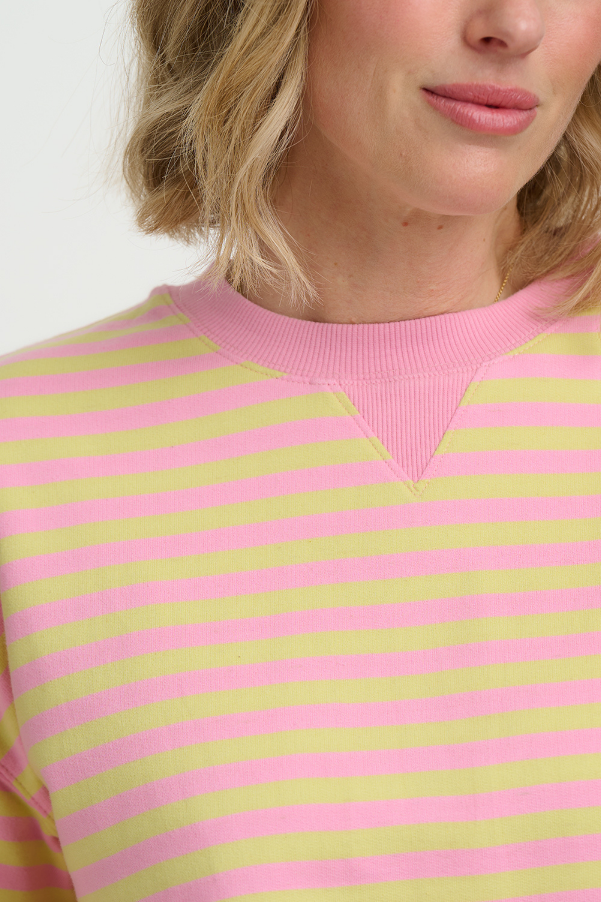 Kært barn har mange navne: Sweatshirt, stribet sweatshirt, pink sweatshirt, gul sweatshirt, bomulds sweatshirt, farverig sweater, casual sweatshirt, Sugarhill Brighton sweatshirt