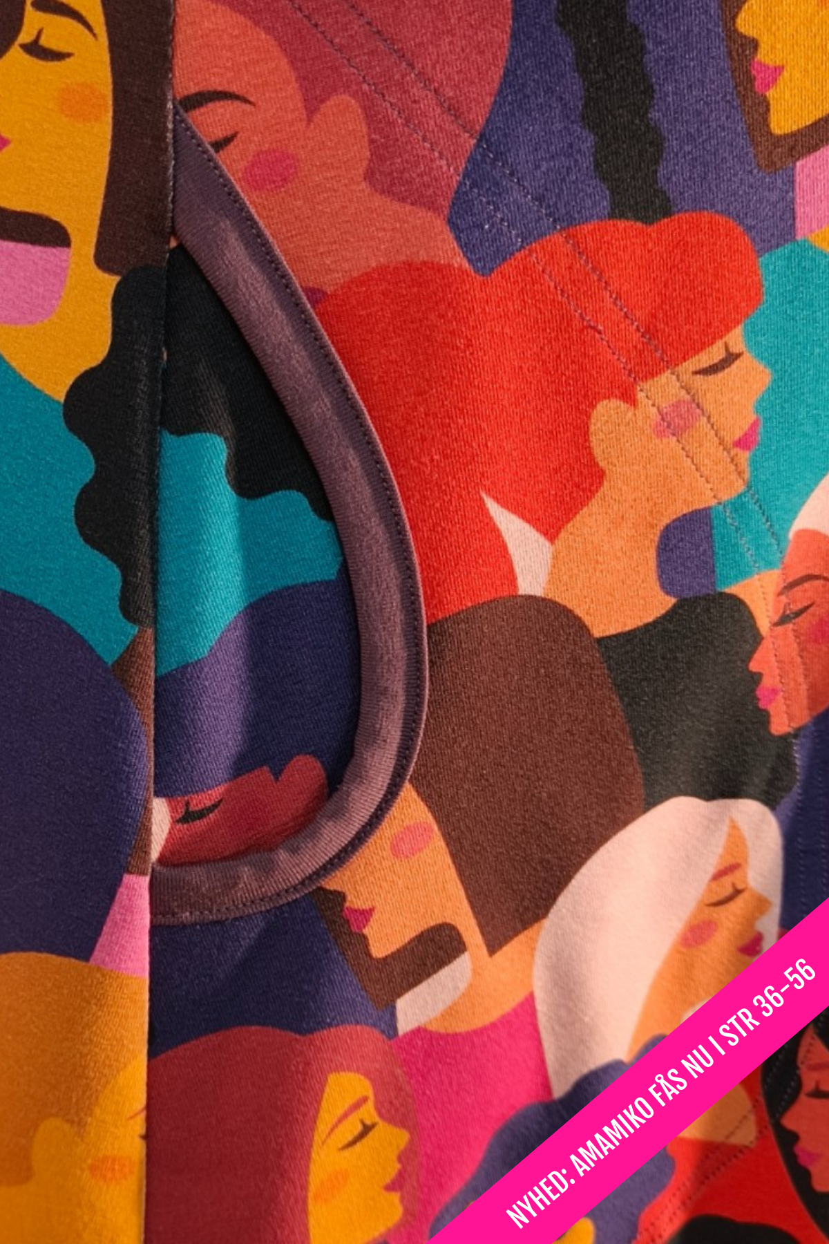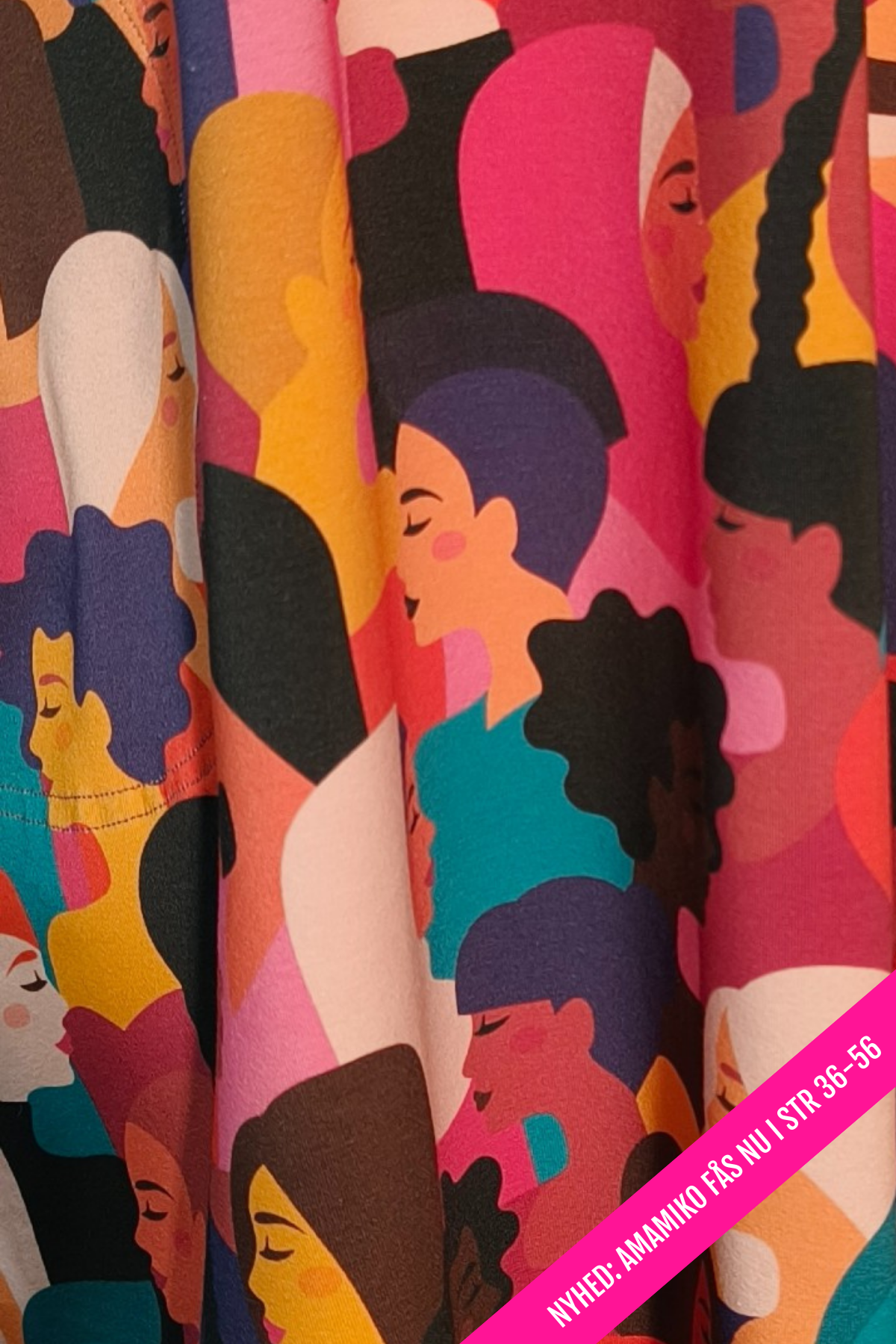 - Farverigt diversity-print med kvindeansigter