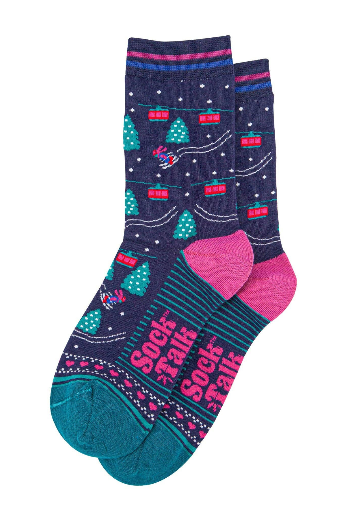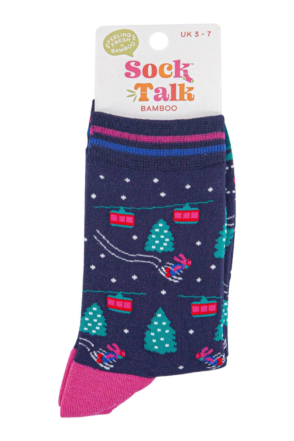 Sock Talk Ski Lift bambusstrømper med skilift og sneprint
