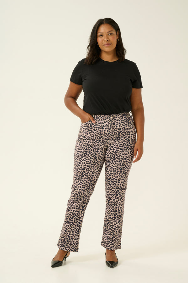 Skønne jeans med leo-print. KClinima har lommer for og bag. Styles dem med den matchende kortærmede skjorte eller din ynglings T-shirt. Leo-printet er kommet for at blive og er igen i efteråret 2024 en af de helt store trends!