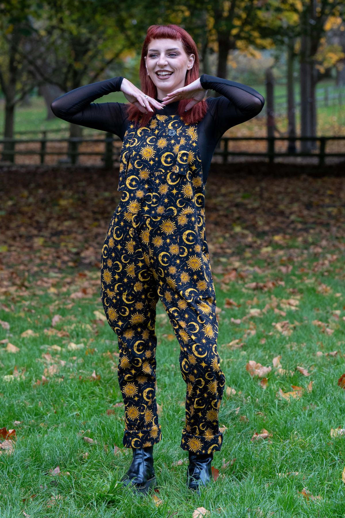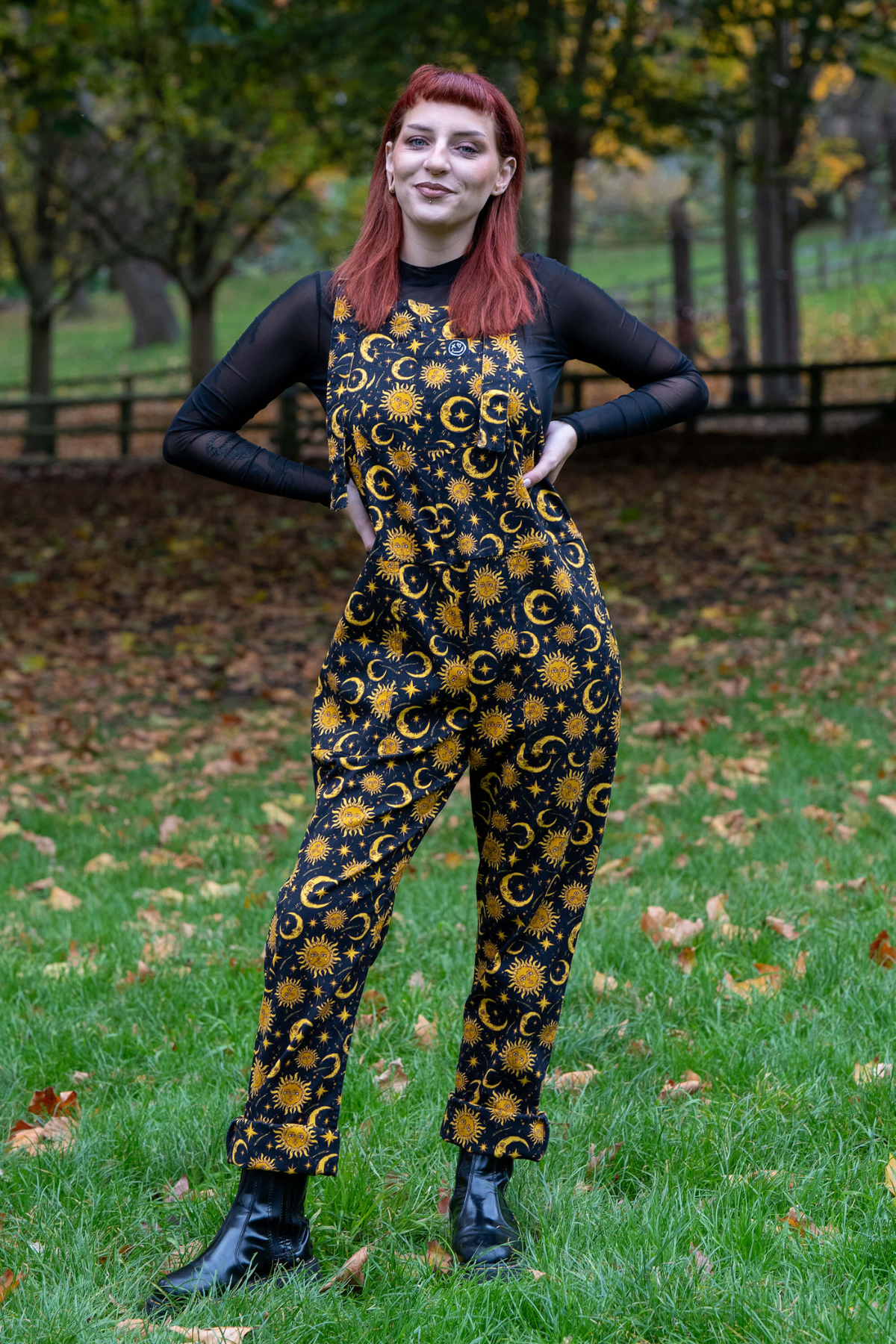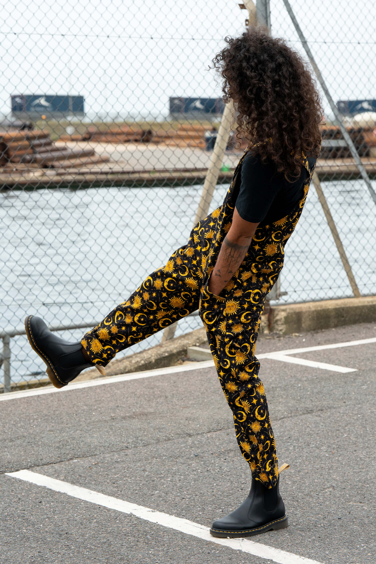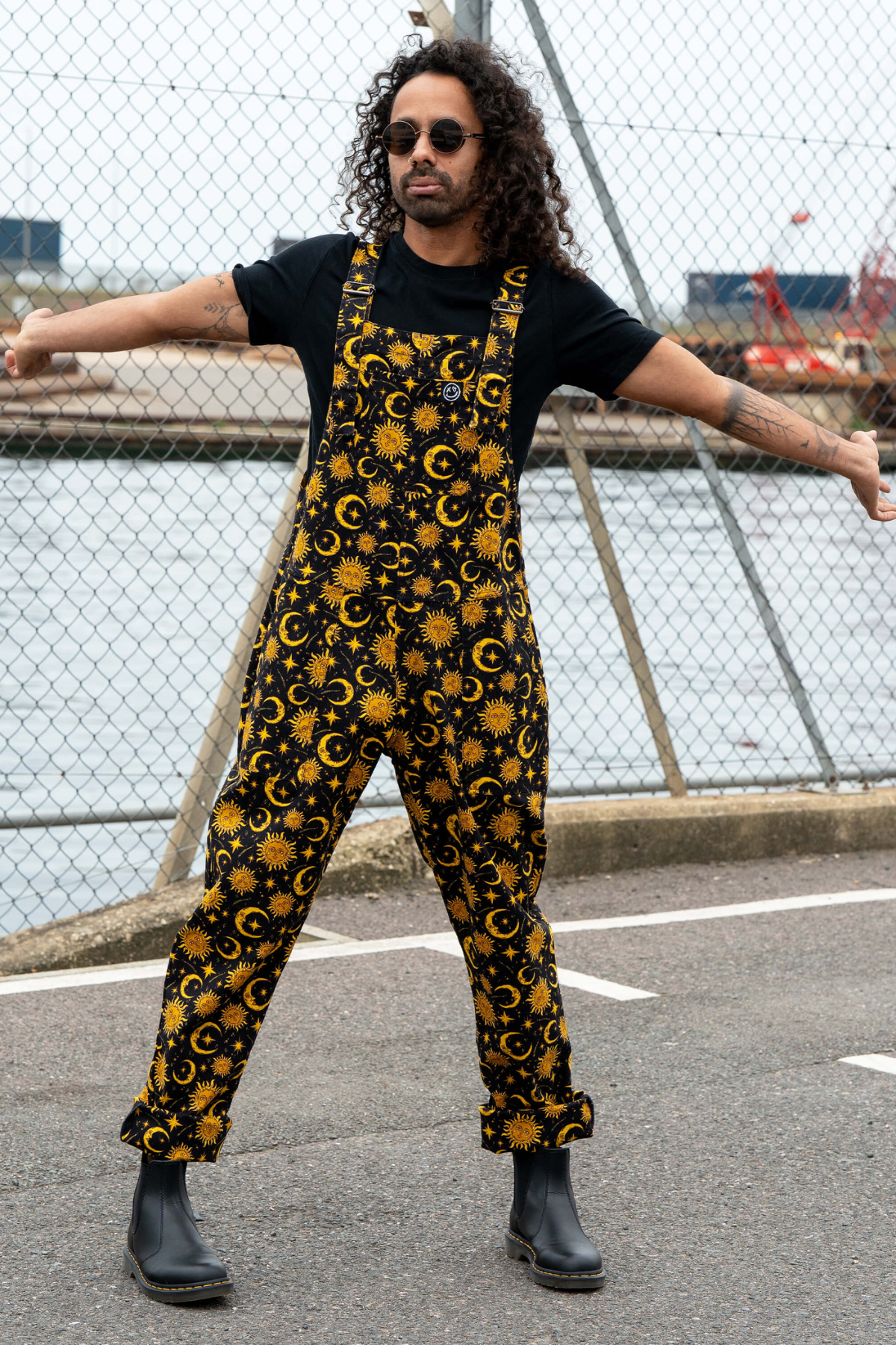 Kært barn har mange navne: Smækbukser, Dungarees, Overalls, Moon & sun print, Astrologi outfit, Witchy dungarees, Stretch twill overalls, Unisex smækbukser – vi skriver det hele, så du kan finde den uanset hvad du søger efter.