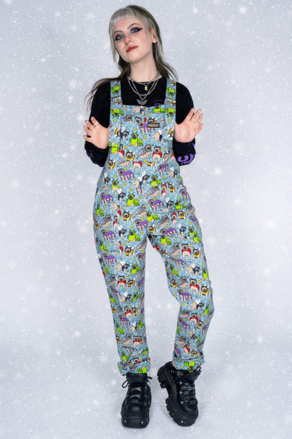 Fantastike dungarees fra RUN&FLY med det skønne print "Pug Bugs". Disse smækbukser har retro "rullespænde" og 5 lommer. (2 forlommer, 2 baglommer og 1 "bib-lomme" med RUN&FLY logo påsyet.)