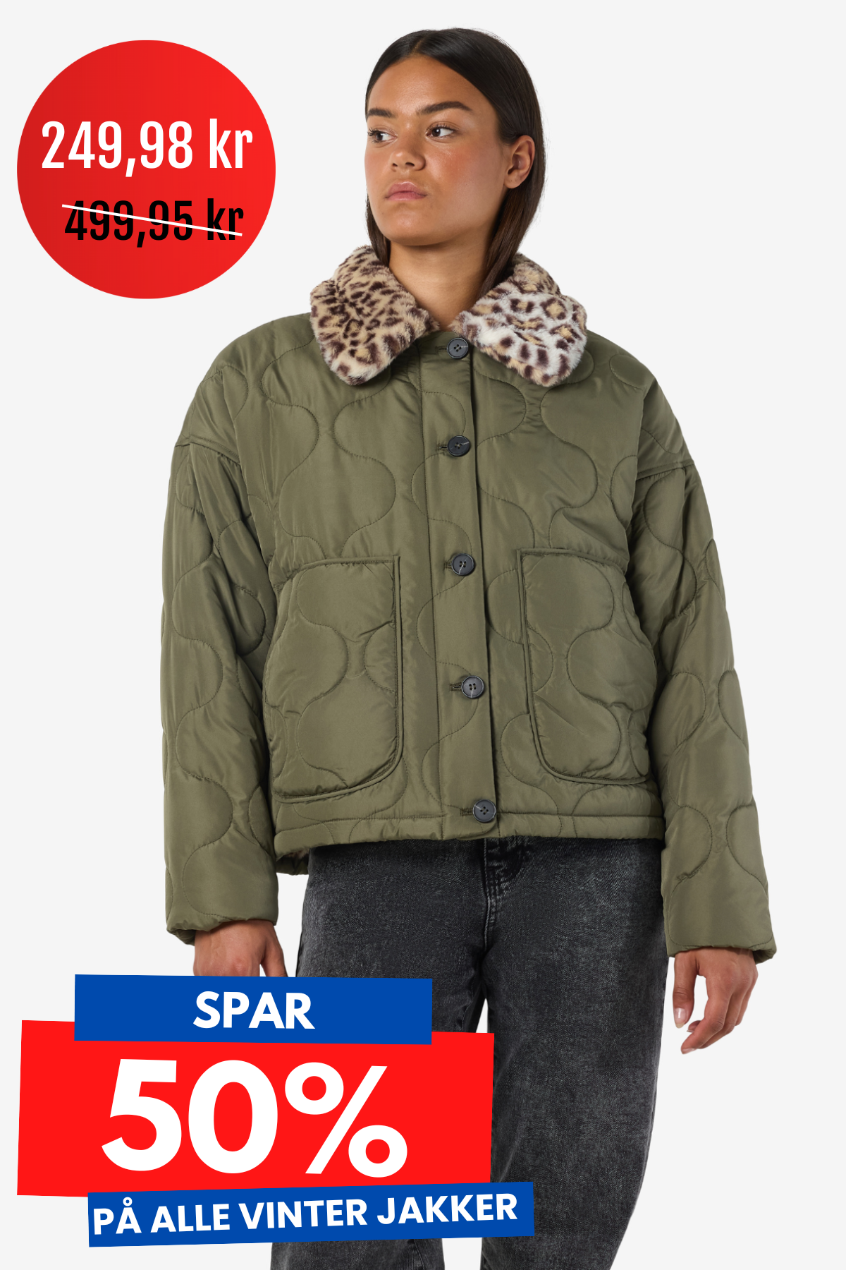 Kært barn har mange navne: quiltet jakke, vatteret jakke, efterårsjakke, overgangsjakke, grøn jakke, armyjakke med leopard krave, fake fur jakke, quiltet jakke dame plus size, Noisy May jakke grøn leopard, oversize quilt jacket, efterårsjakke med fake fur krave – vi skriver det hele, så du kan finde den uanset hvad du søger efter.