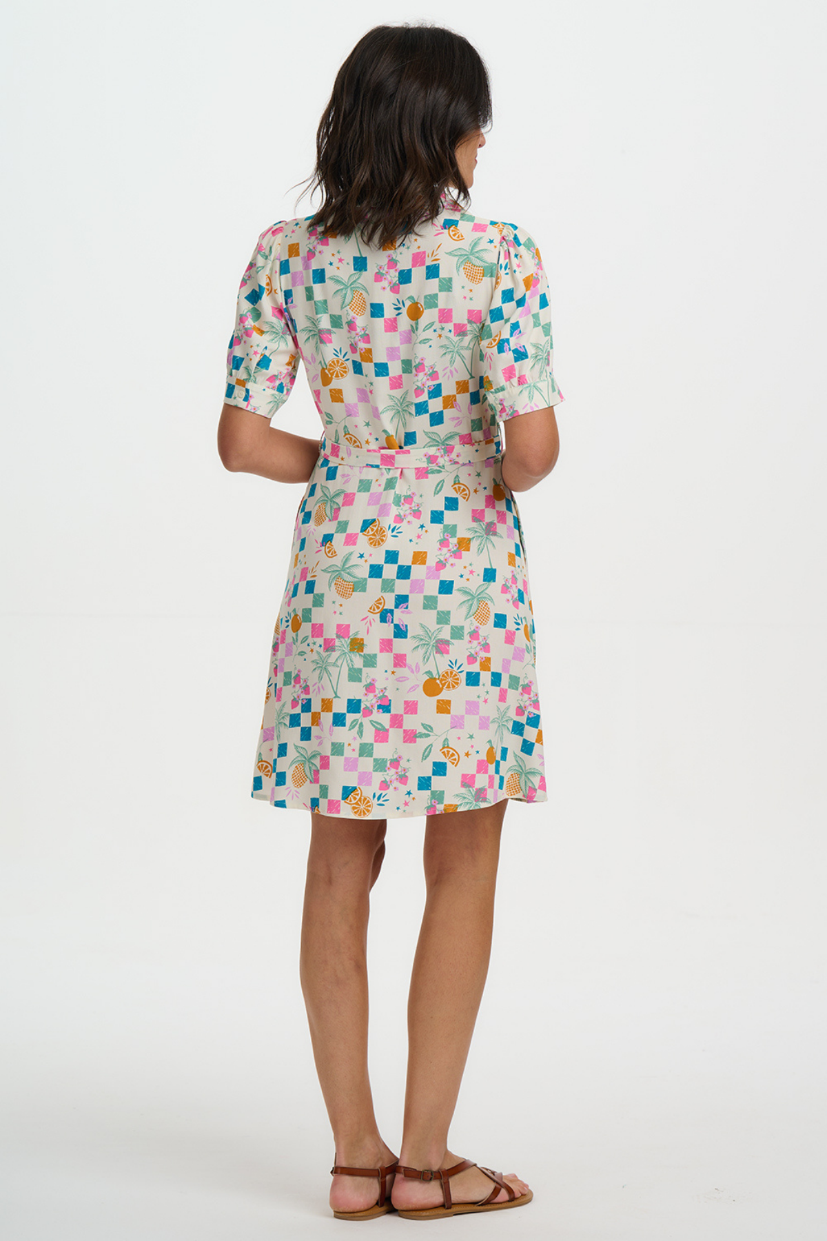 Bagside af Rebekka Mini Shirt Dress fra Sugarhill Brighton med farverigt print og kortærmet design